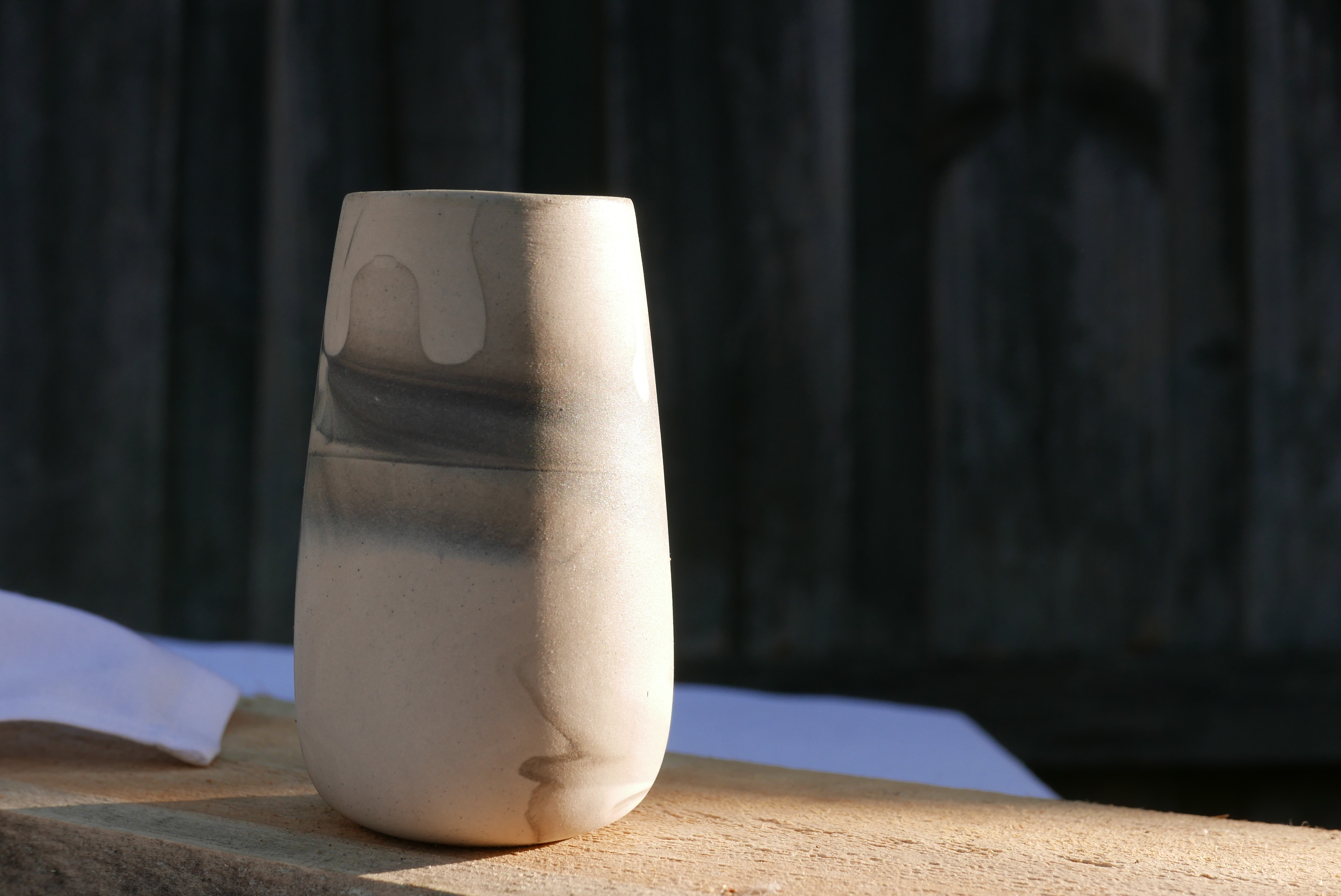 Ceramic makes an optimal material for enjoying wine. Its inert, so flavour isnʼt affected, it can be manipulated into the same forms as glass, so aeration is no problem. Ceramic on the other hand offers greater thermal properties, maintaining a stable temperature for longer. While ceramic isnʼt transparent like glass, fortunately transparency isnʼt a requirement to enjoy wine, nor does it have an effect on taste.